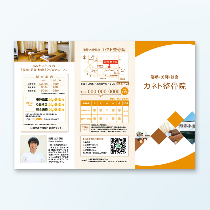 住宅地にある整骨院や、駐車場の奥に位置する店舗は、通りがかりの人や新規来院者が店舗を見つけにくいという課題があります。今回の整骨院ポスターは、そのような悩みを解決するために、視認性を高めつつ、店舗のサービスや営業時間を的確に伝えるデザインを採用しました。